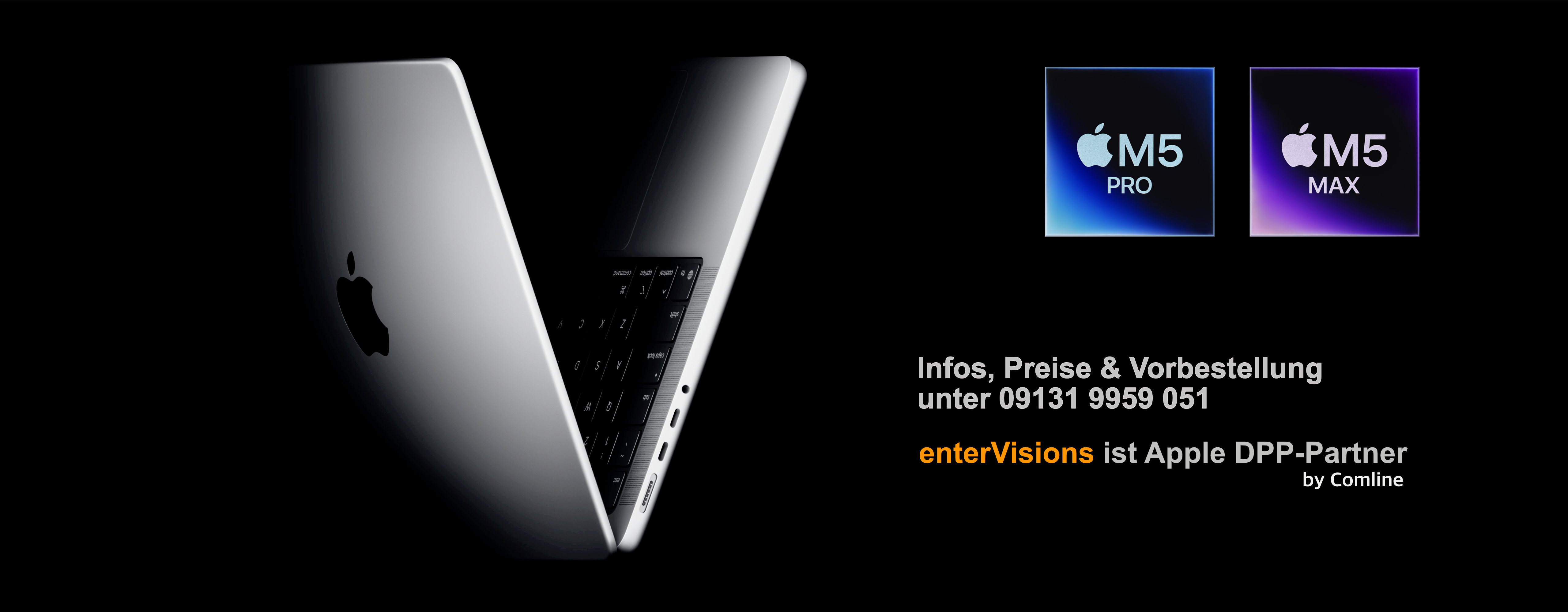 Wenn Sie an einem Kauf der neuen Apple MacBooks Pro mit M4 Chips oder am Kauf des neuen Apple iMac M4 interessiert sind, lassen Sie sich doch schon heute unverbindlich für dieses neue faszinierende Produkt von Apple bei enterVisions.de vormerken - schreiben Sie uns eine E-Mail an: info@entervisions.de oder rufen Sie uns unter 09131 9959051 an. Wir setzen uns dann umgehend mit Ihnen in Verbindung, sobald die Geräte auf Lager sind, so dass Sie einer der Ersten sind, der die neuen Apple M4 Geräte bei uns hier in Erlangen kaufen kann.